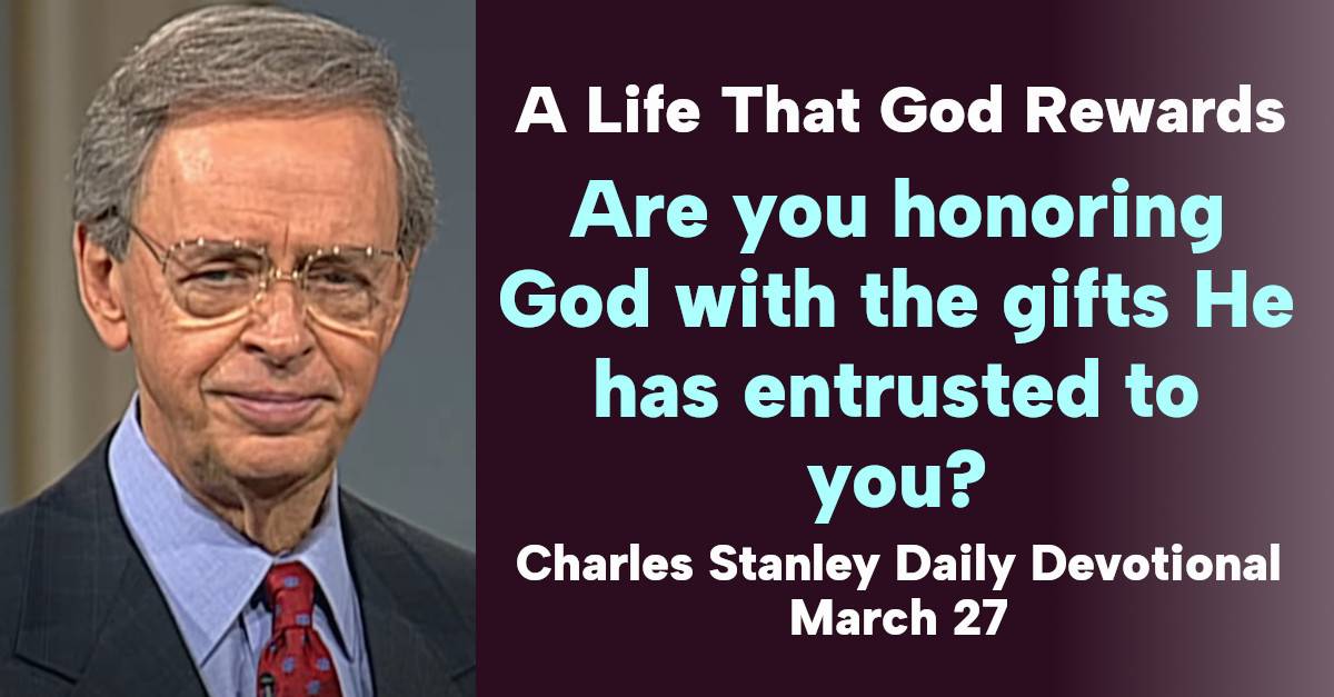 Charles Stanley (March 27, 2025) Daily Devotional: A Life That God Rewards.