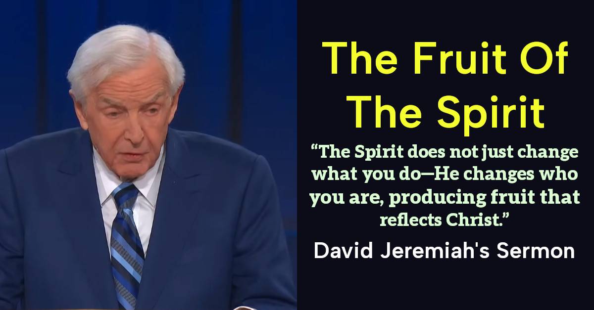 Watch David Jeremiah's Sermon: The Fruit Of The Spirit. This week, Dr. David Jeremiah reveals how the “fruit of the Spirit” isn’t just a list of virtues—it’s the visible evidence of a life transformed by God. — Galatians 5:22-23