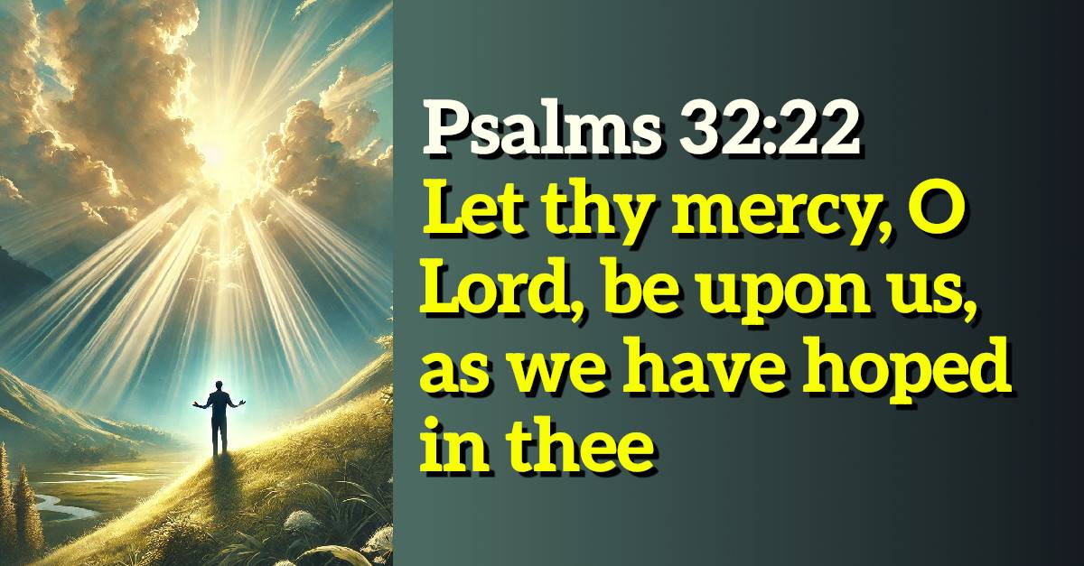 Scripture Reference: Romans 9:15-16 - For he says to Moses, “I will have mercy on whom I have mercy, and I will have compassion on whom I have compassion.” 16 It does not, therefore, depend on human desire or effort, but on God’s mercy., Psalms 32:22 - Let thy mercy, O Lord, be upon us, as we have hoped in thee., Psalms 130:7 - Israel, put your hope in the Lord for with the Lord is unfailing love and with him is full redemption.