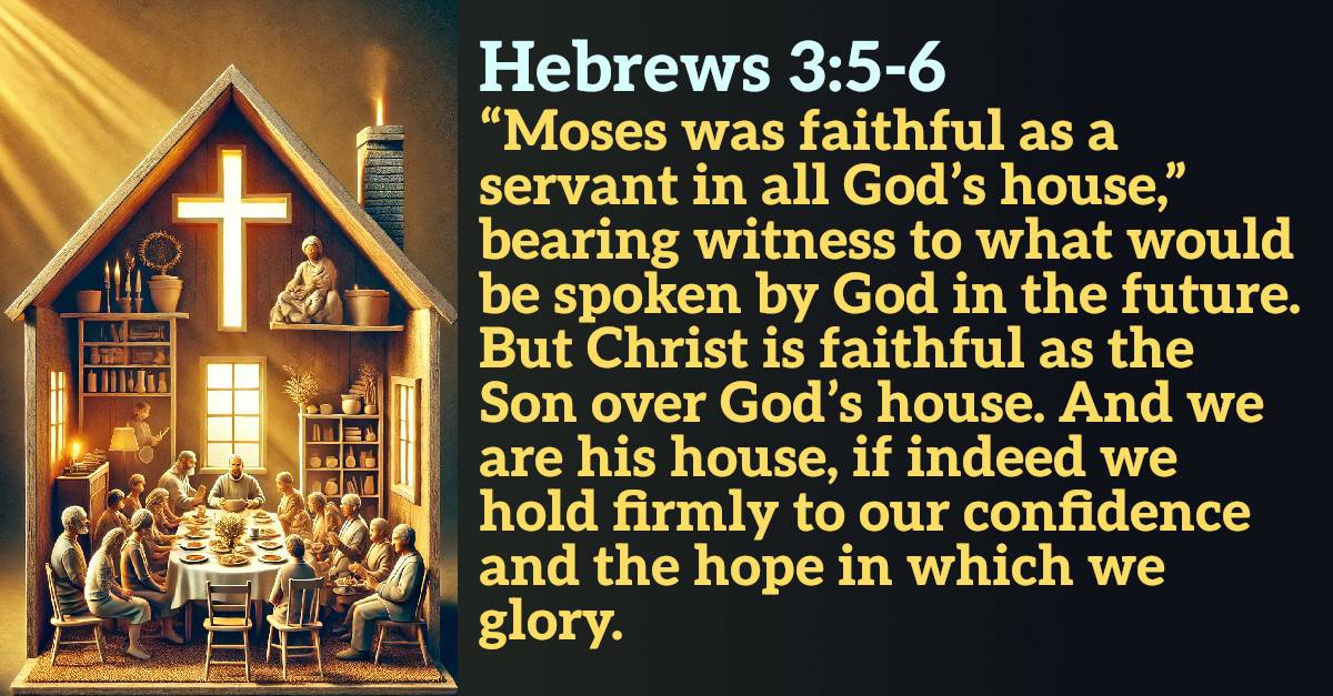 Scripture reference: Hebrews 3:5-6 - “Moses was faithful as a servant in all God’s house,” bearing witness to what would be spoken by God in the future. 6 But Christ is faithful as the Son over God’s house. And we are his house, if indeed we hold firmly to our confidence and the hope in which we glory.