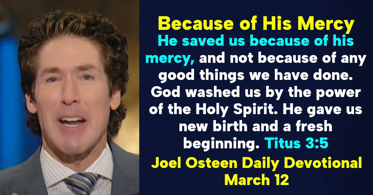Joel Osteen (March 12, 2025) Daily Devotional: Because of His Mercy.