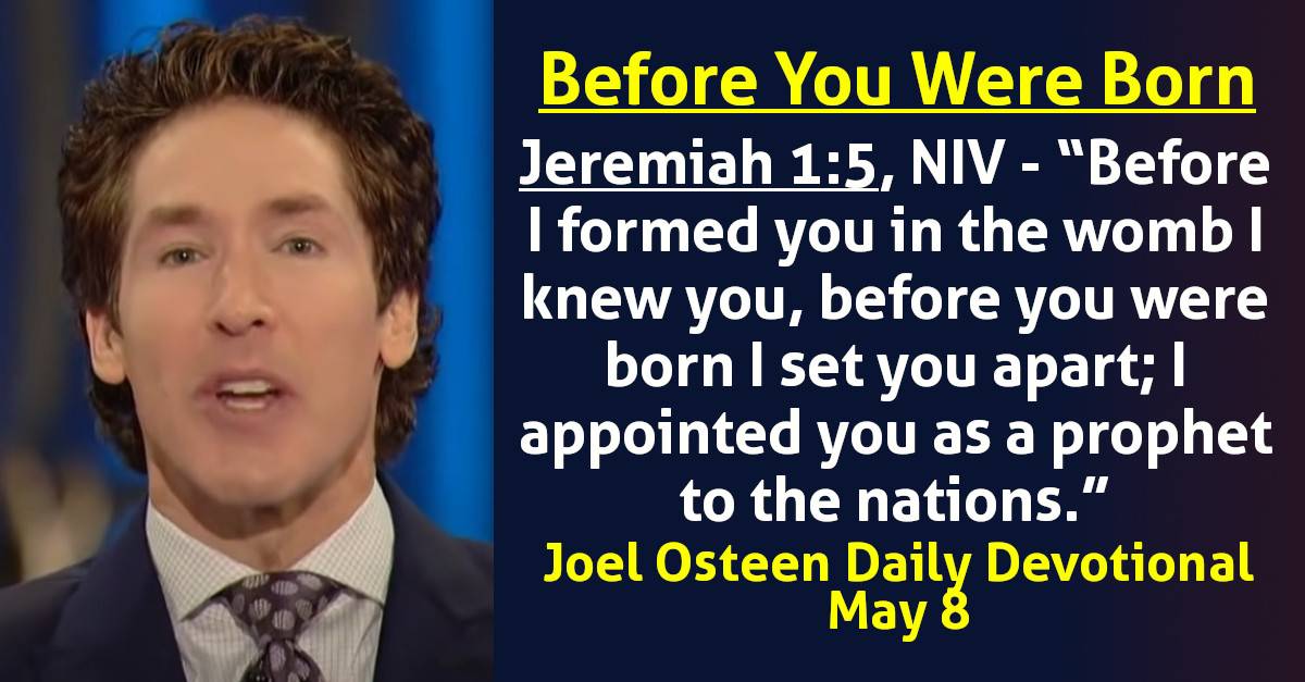 Joel Osteen (May 8, 2024) Daily Devotional: Before You Were Born.