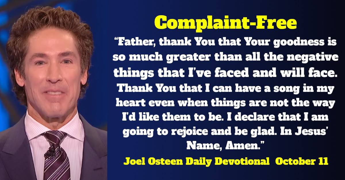 Joel Osteen Daily Devotional (October 11, 2025) Complaint-Free.