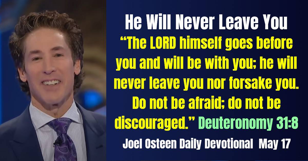 Joel Osteen (May 17, 2025) Daily Devotional: He Will Never Leave You.