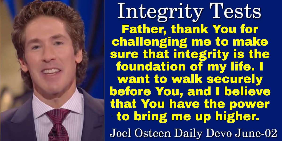 Joel Osteen (June-02-2025) Daily Devotional: Integrity Tests