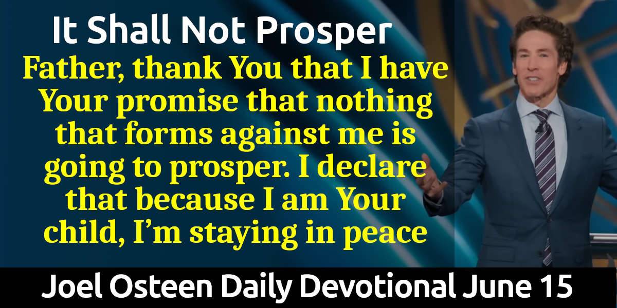 Joel Osteen (June-15-2025) Daily Devotion: It Shall Not Prosper.