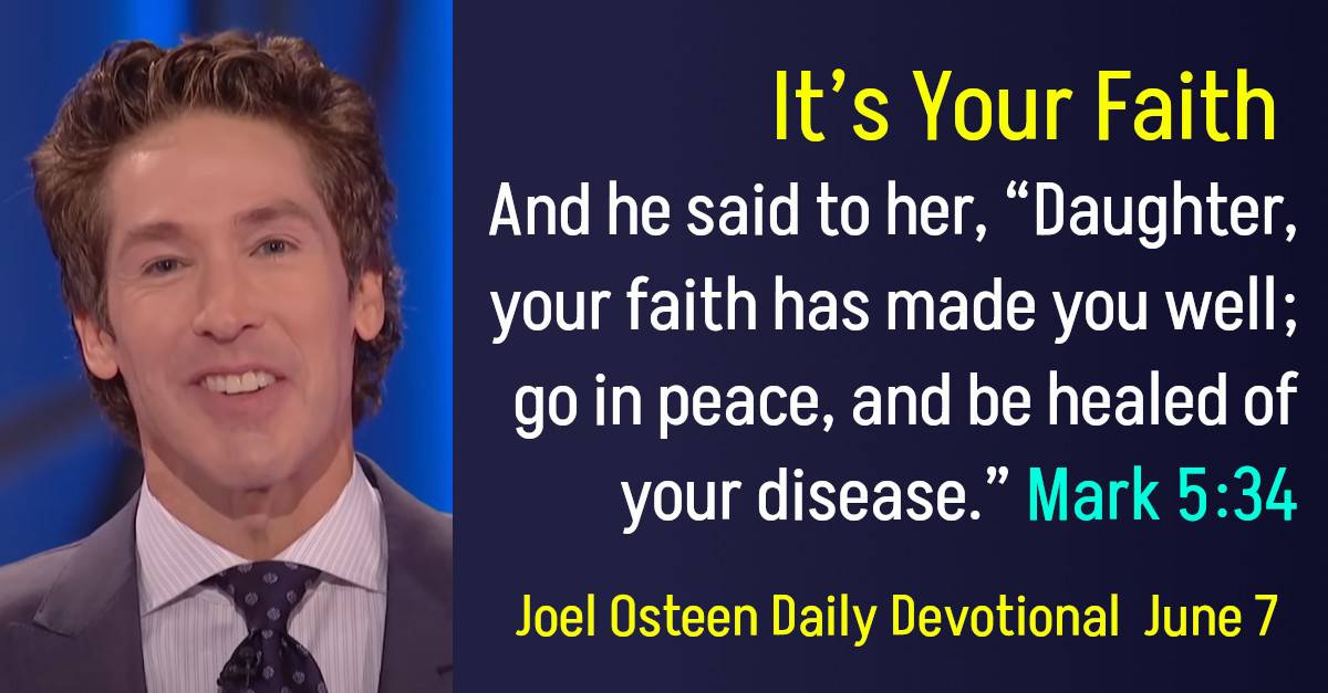 Joel Osteen (June 7, 2025) Daily Devotional: It’s Your Faith.
