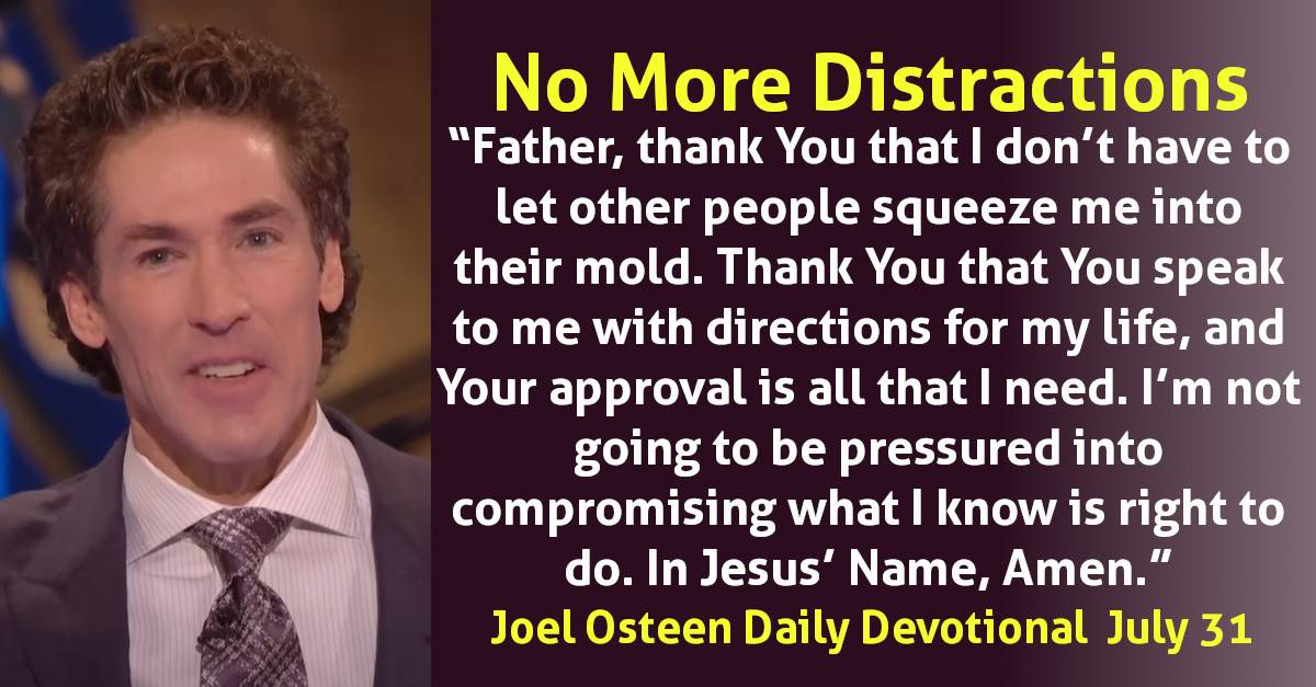 Joel Osteen (July 31, 2025) Daily Devotional: No More Distractions.