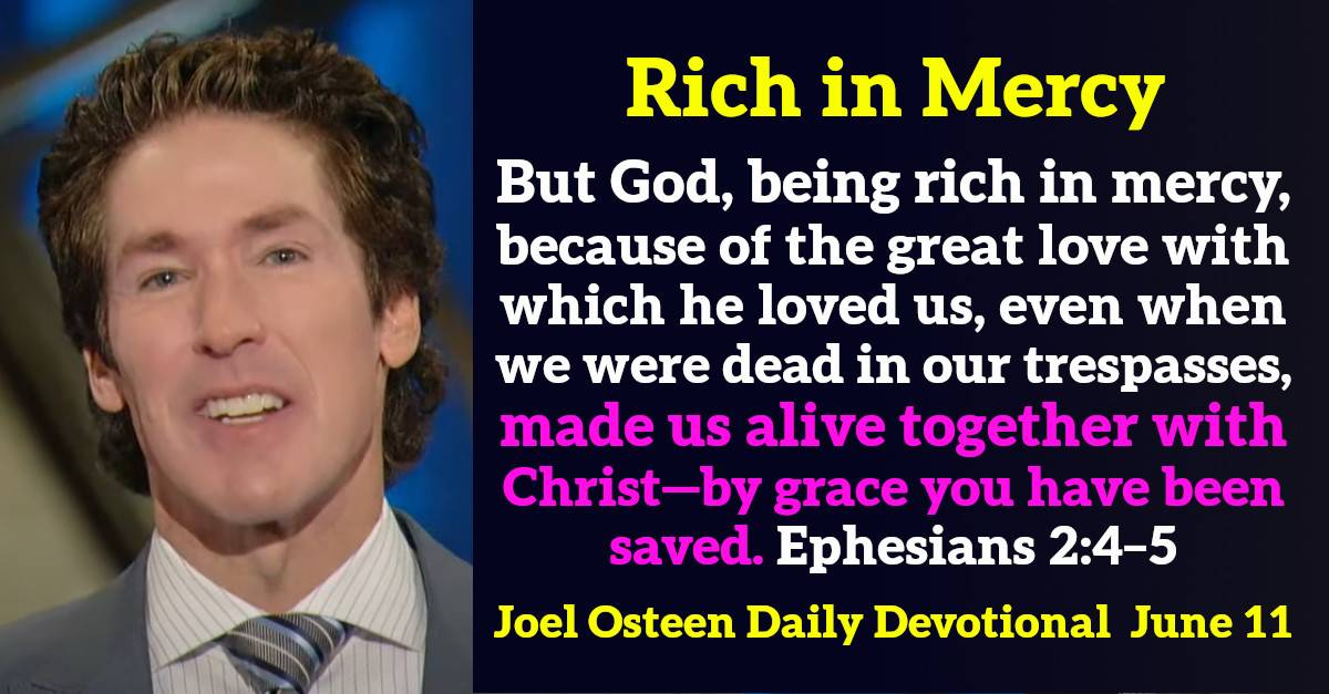 Joel Osteen (June 11, 2025) Daily Devotional: Rich in Mercy.