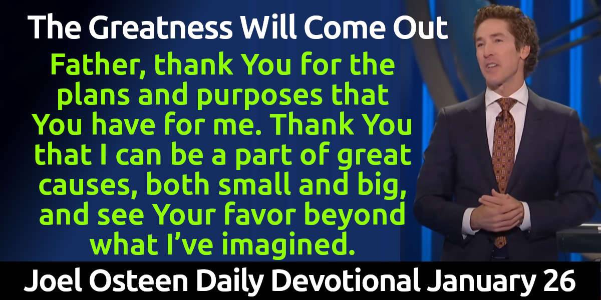 Joel Osteen (January-26-2025) Daily Devotional: The Greatness Will Come Out - Today's Inspiration Word.