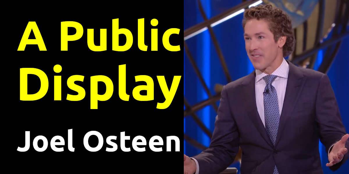 Joel Osteen - Sermon: A Public Display. God sometimes works behind the scenes in our lives, but there are other times when the work that He does is a public display of His goodness. When these seasons come, the people around you are going to see the goodness, the power, and the glory of God displayed through your life. Like a seed finally springing up from the soil, you are coming into a time where people are going to see what God has been doing in your life. I want to talk to you today about a public display.