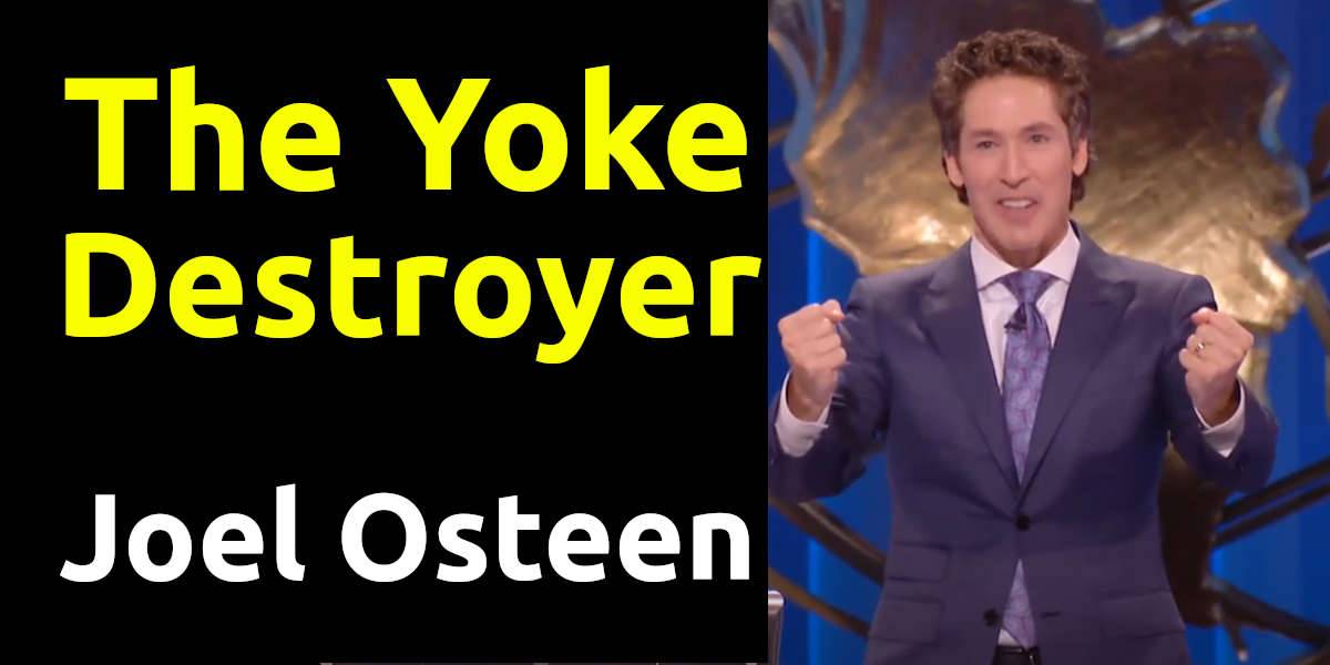Joel Osteen - Sermon: The Yoke Destroyer. Many people don't realize they are living with a yoke that's holding them back from their full potential. A yoke is something that is a struggle or burden. Perhaps it's a sickness, low self-esteem, depression, or something inherited from your family. It is anything that is keeping you from being all that God has created you to be. The good news is that our God is the yoke destroyer. Isaiah 10:27 says, his burden will be taken off of your shoulders and the yoke removed from your neck, and the yoke will be destroyed.? Let Joel show you how to release your burdens to God so that He can take you where you've never gone before. The yoke-destroying, burden-removing God wants to thrust you to a new level of your destiny.