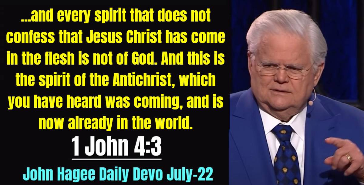 John Hagee (July-22-2025) Daily Devotional: 1 John 4:3 - ...and every spirit that does not confess that Jesus Christ has come in the flesh is not of God. And this is the spirit of the Antichrist, which you have heard was coming, and is now already in the world.