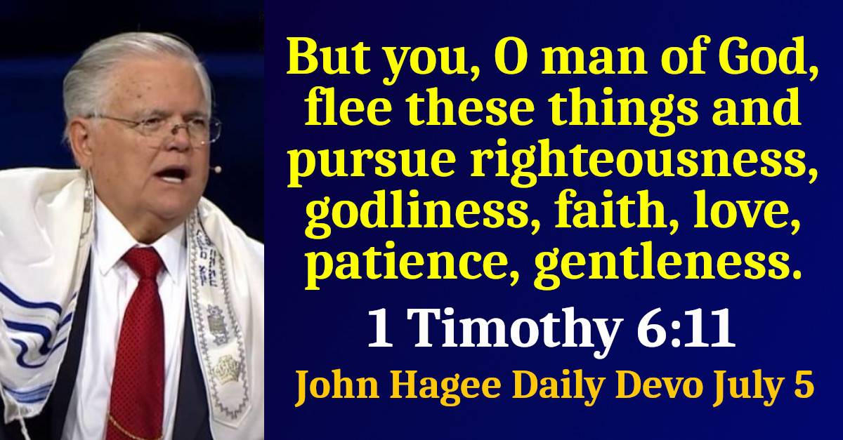 John Hagee (July 05 2025) Daily Devotional: 1 Timothy 6:11 - But you, O man of God, flee these things and pursue righteousness, godliness, faith, love, patience, gentleness.