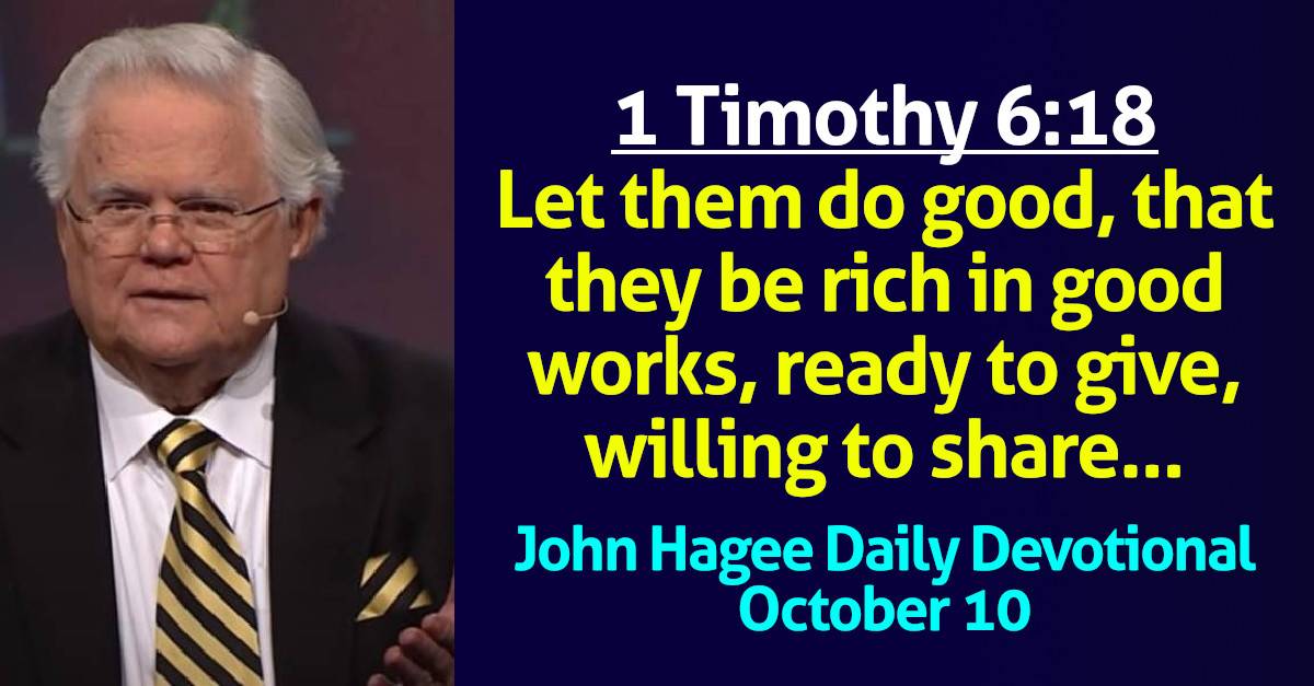 John Hagee (October-10-2025) Daily Devotional: 1 Timothy 6:18 - Let them do good, that they be rich in good works, ready to give, willing to share…