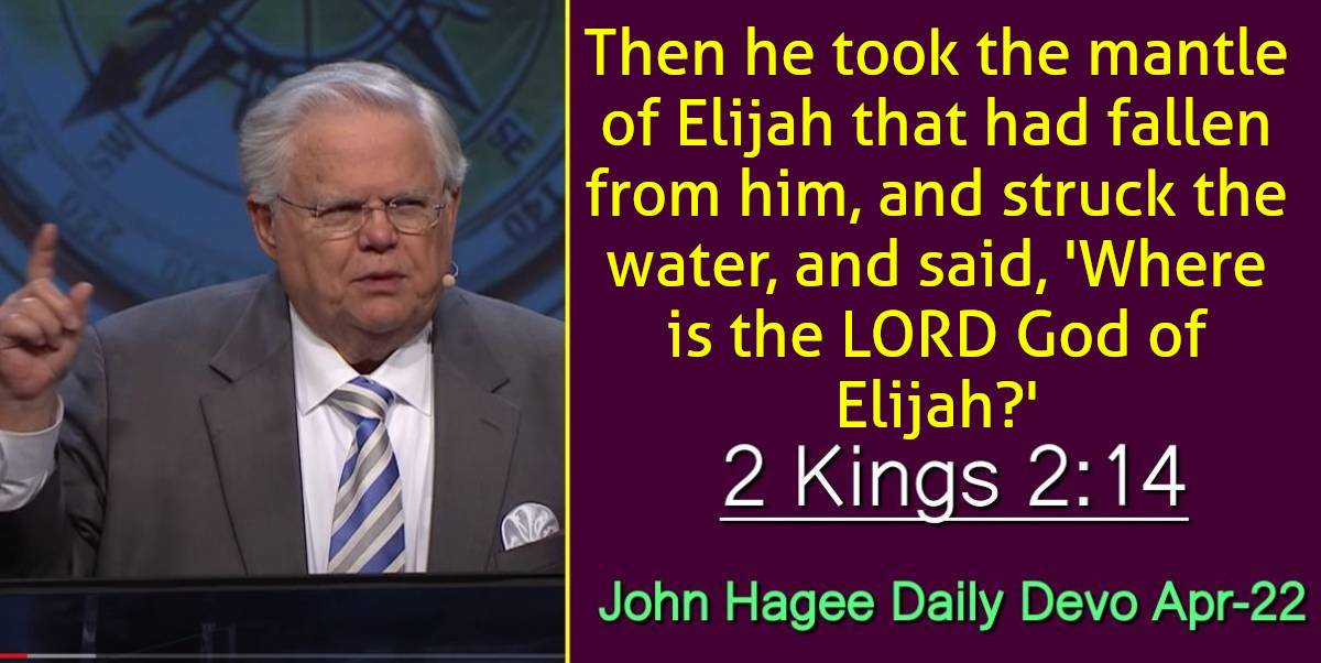 John Hagee (April-22-2025) Daily Devotional: 2 Kings 2:14 - Then he took the mantle of Elijah that had fallen from him, and struck the water, and said, 'Where is the LORD God of Elijah?'