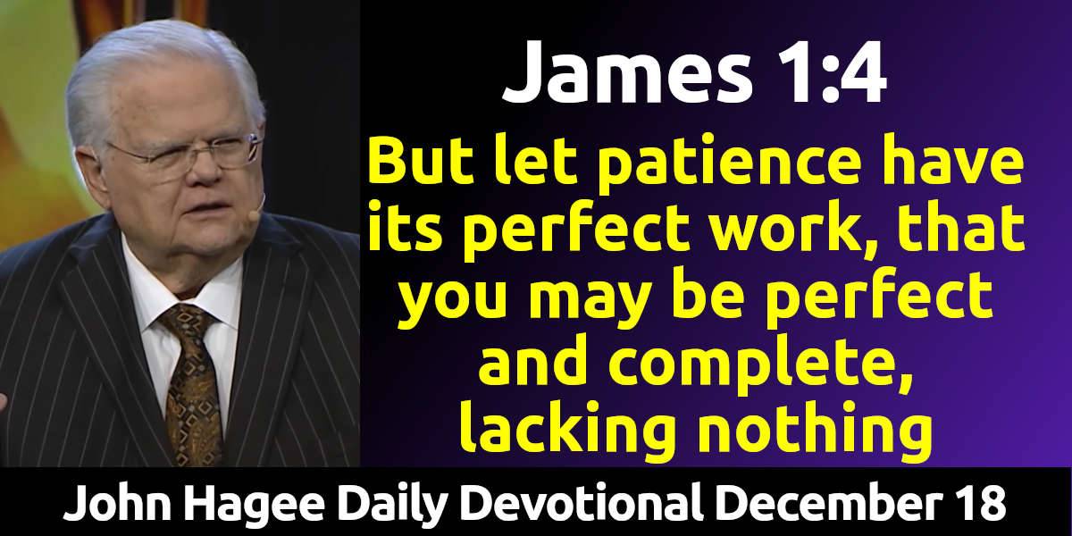 John Hagee (December-18-2024) Daily Devotional: James 1:4 - But let patience have its perfect work, that you may be perfect and complete, lacking nothing