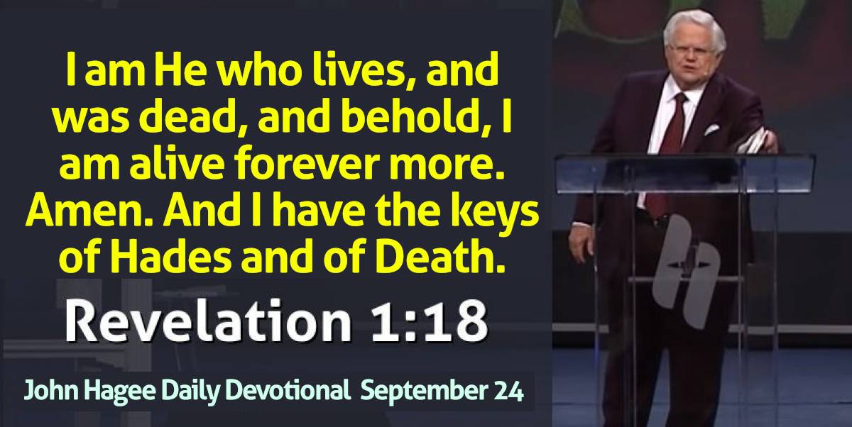 John Hagee (September-24-2025) Daily Devotional: Revelation 1:18 - I am He who lives, and was dead, and behold, I am alive forevermore. Amen. And I have the keys of Hades and of Death.