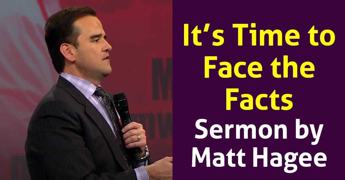 Matt Hagee Sermon: It’s Time to Face the Facts. Pastor Matt Hagee says that facts are different than feelings. They arrive when they arrive, not thinking about how the news is going to affect us. Our tendency is to embrace the facts that make us feel good, ignoring those that make us feel bad. But if we are ever going to improve, we can’t ignore the facts. Sometimes facts include failure. But the Word of God says that God has redeemed us, and we are set free. Sometimes facts tell us that we can’t actually see God; all we can see is the problem we are facing. We can’t see the wind either, but even the wind and the waves obey him. When all we see is our problem staring us in the face, God sees our defense. Don’t worry about the problem. Those who are for us are far greater than those who are against us!