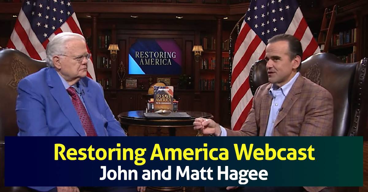 Watch John and Matt Hagee - Restoring America Webcast. Be part of the movement to reclaim America’s values and rebuild a brighter future! Join us as we dive into the power of the 10 Commandments and explore how these ancient principles hold the keys to restoring hope and unity in our nation. America needs you—let’s rise up together!