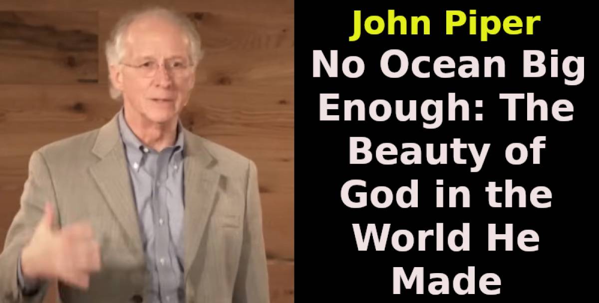 John Piper (April-13-2025) No Ocean Big Enough: The Beauty of God in the World He Made. When we look at oceans or mountains, whales or bears, fields or deserts, God wants us to see the beauty, power, and wisdom in his creation and think, “What must God be like!” He wants us to ride the waves he has made into worship, and climb the mountains he built to see more of him.