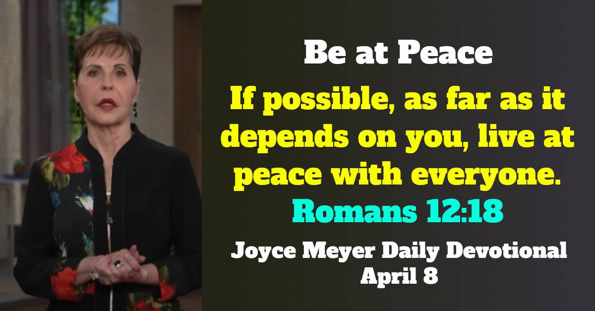 Joyce Meyer (April 8, 2025) Daily Devotional: Be at Peace.
