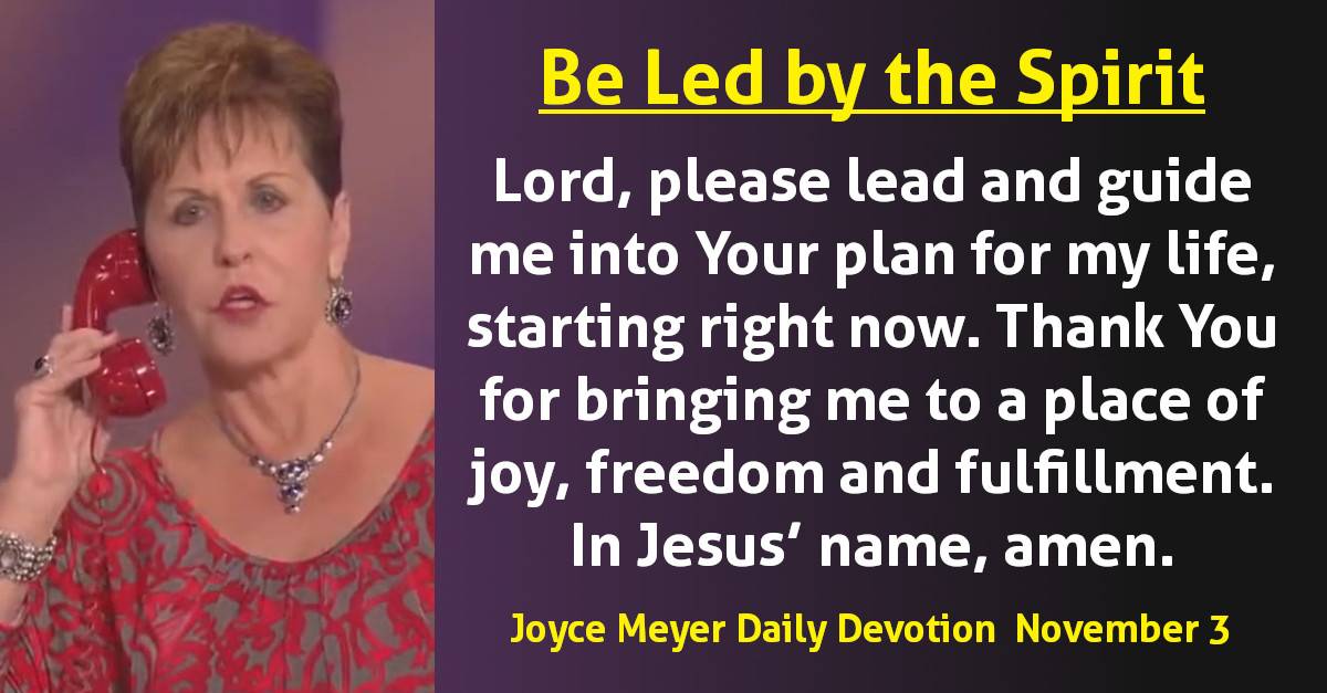 Joyce Meyer (November-03-2025) Daily Devotion: Be Led by the Spirit.