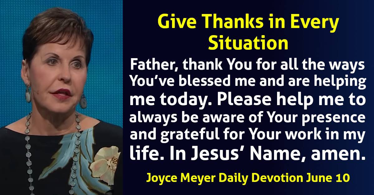Joyce Meyer (June-10-2025) Daily Devotion: Give Thanks in Every Situation.