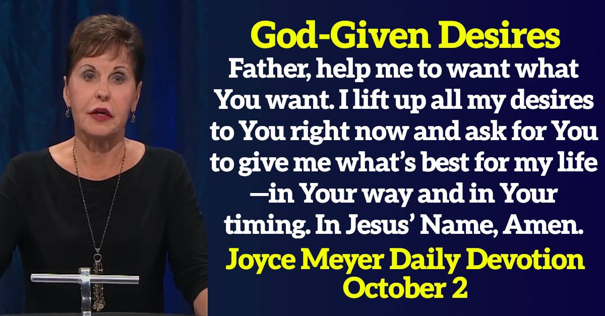 Joyce Meyer (October-02-2024) Daily Devotion: God-Given Desires.