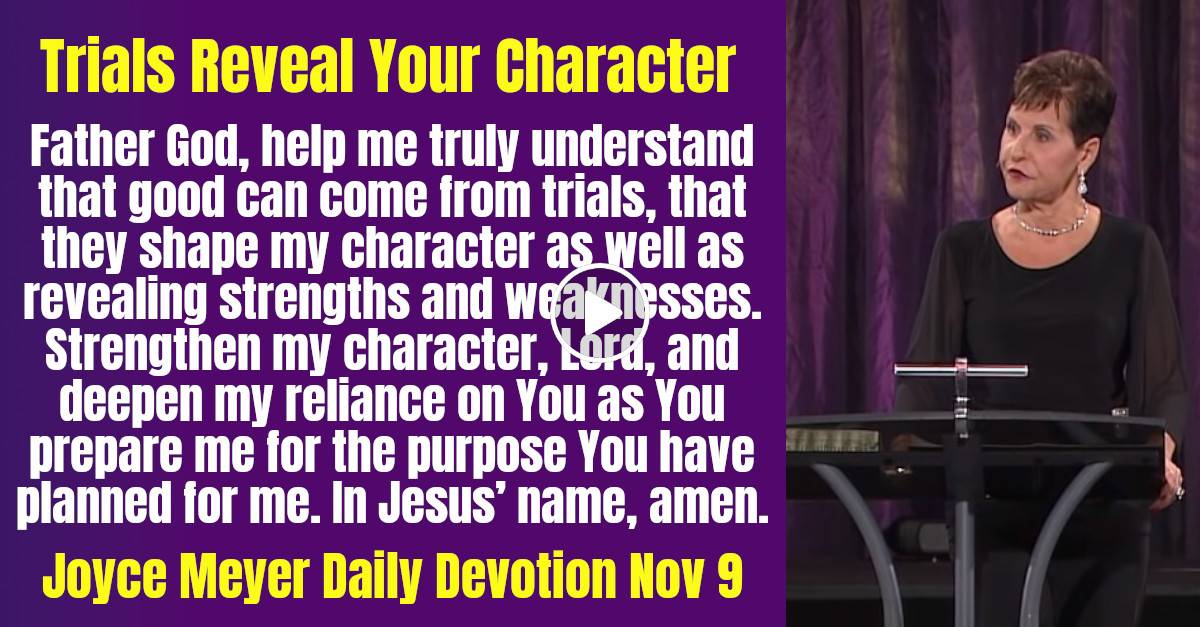 Joyce Meyer (November-09-2023) Daily Devotional: Trials Reveal Your Character.