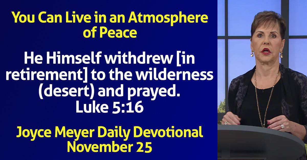 Joyce Meyer Daily Devotional (November 25, 2024) You Can Live in an Atmosphere of Peace.