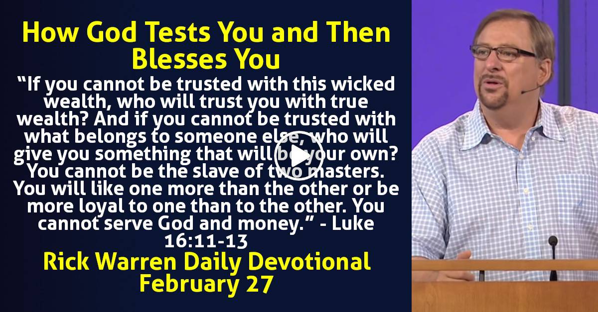 Rick Warren (February 27, 2024) Daily Devotional: How God Tests You and Then Blesses You.