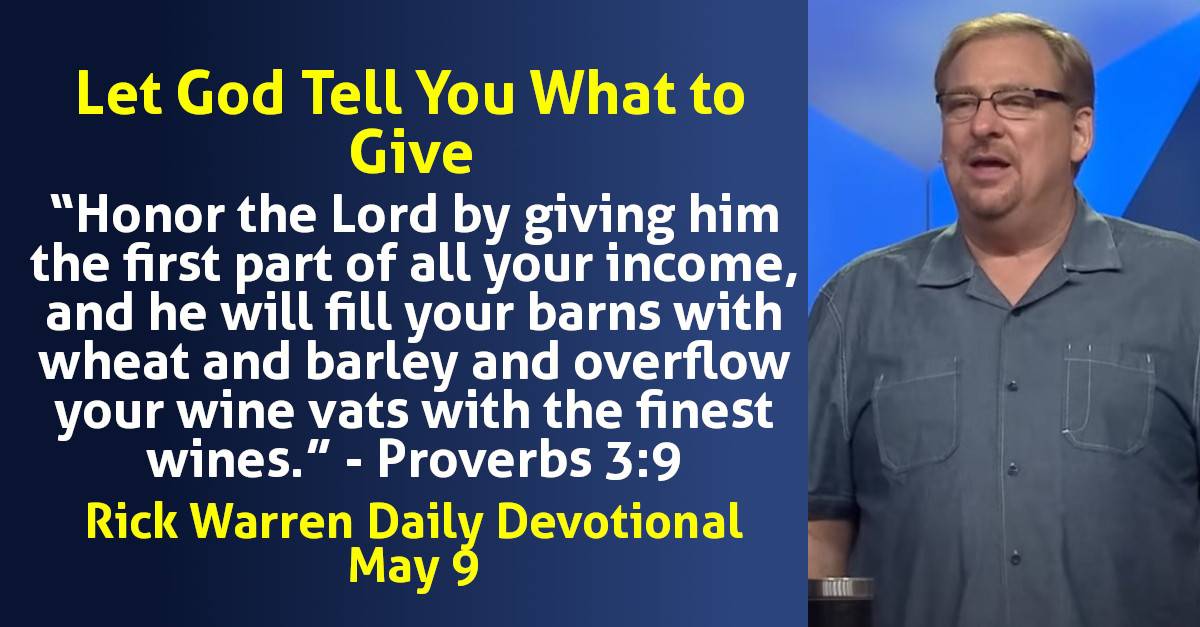 Rick Warren (May 9, 2025) Daily Devotional: Let God Tell You What to Give.