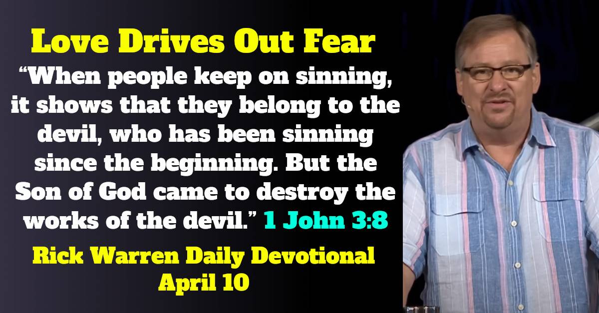 Rick Warren (April 10, 2025) Daily Devotional: Love Drives Out Fear.
