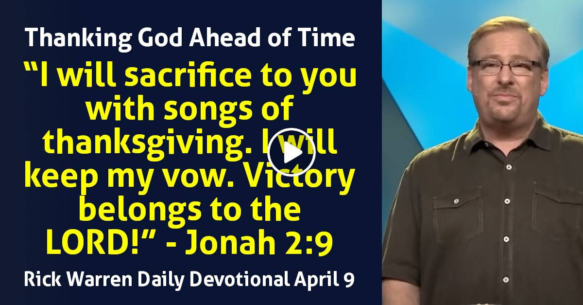 Rick Warren Daily Devotional (April 9, 2025) Thanking God Ahead of Time.