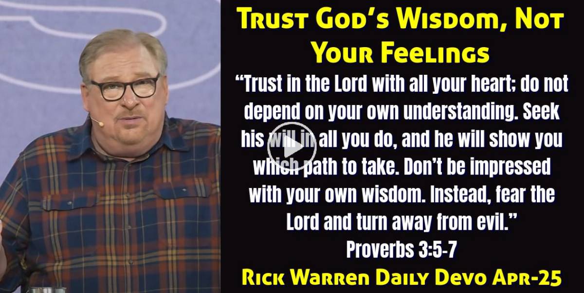 Rick Warren (April-25-2024) Daily Devotional: Trust God’s Wisdom, Not Your Feelings.
