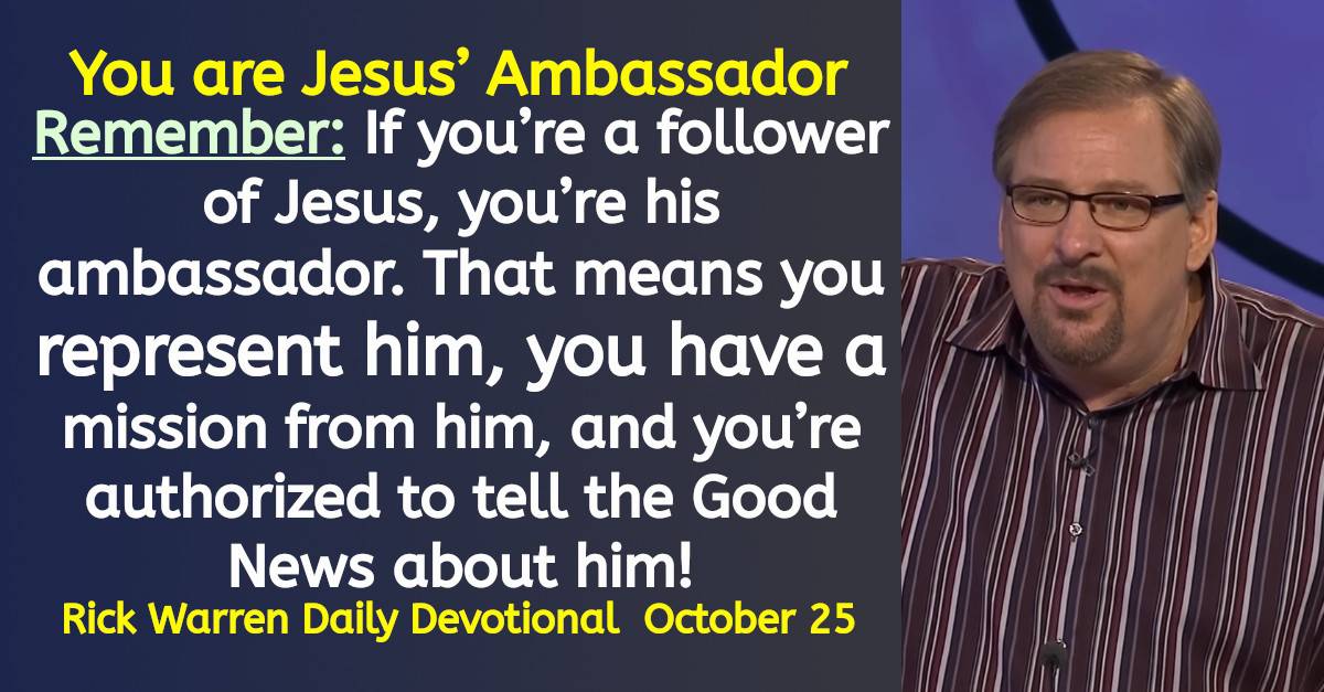 Rick Warren Daily Devotional (October 25, 2025) You are Jesus’ Ambassador.