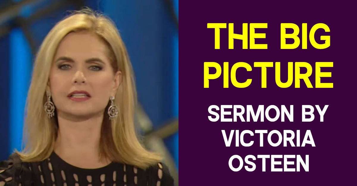Sermon The Big Picture by Victoria Osteen online. God has placed in our spirits a longing to achieve, to be successful, to accomplish greatness. Ultimately, we are being groomed on this earth to rule and reign with Him. To accomplish this, we must ask God for wisdom on a daily basis. When we seek wisdom from God, he well give it generously and help us to make good decisions.